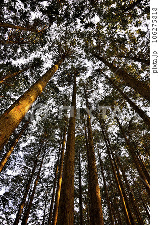 朝日さしこむ檜林 丹沢の小草平尾根