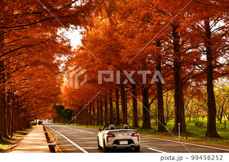 滋賀県高島市マキノの紅葉したメタセコイア並木