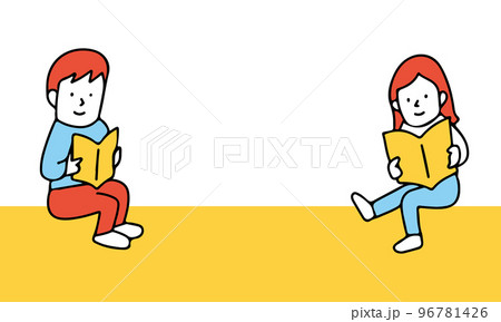 座って本を読む二人のイラストフレーム