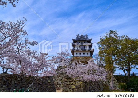 春の兵庫県洲本市の洲本城跡(模擬天守)