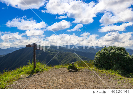 伯母子岳~三田谷、熊野古道「小辺路」小辺路、山頂風景(奈良県吉野)※作品コメント欄に撮影位置あり