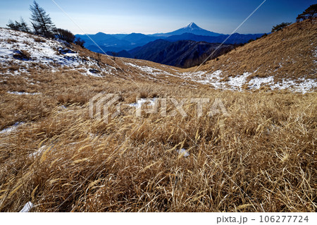 大菩薩連嶺・白谷ノ丸の草原と冬の富士山