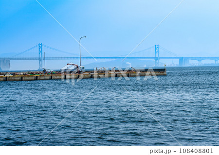 小阪漁港から見た突堤と瀬戸大橋 香川県丸亀市本島町