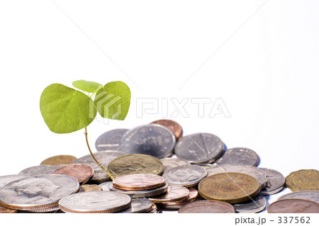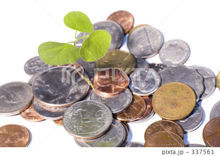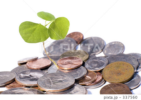 世界の硬貨と新芽