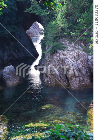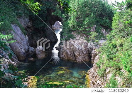 夏の鳥取県浦富海岸 鴨ケ磯の水尻洞門