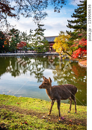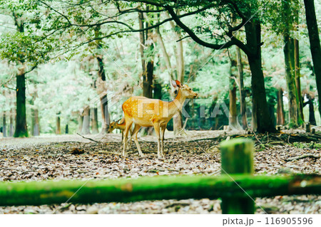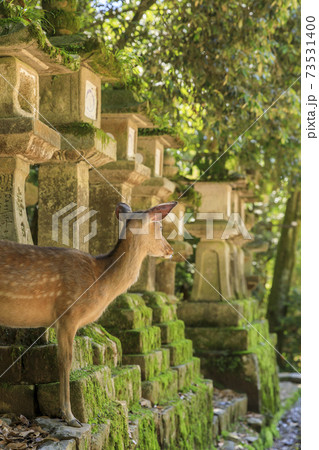 奈良公園と鹿と灯籠 春日大社参道 奈良観光スポット 世界遺産 イメージ素材