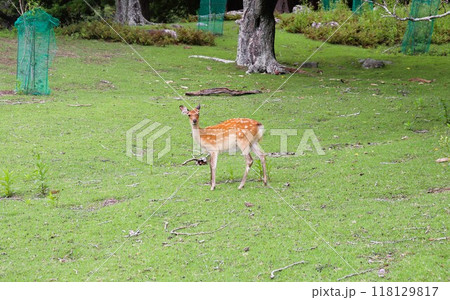 野生の鹿 小鹿 金華山 黄金山神社 宮城県