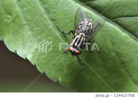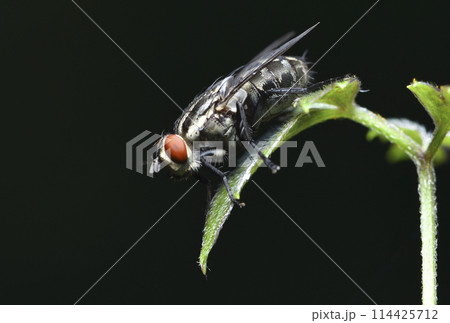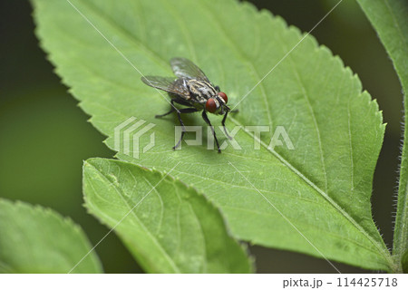 植物葉子上的蒼蠅特寫