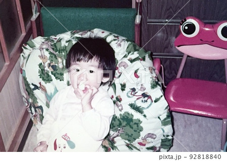昭和50年代 部屋でティッシュを持って遊ぶ1歳の女の子