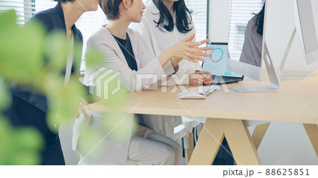 会社のオフィスにいる男女のビジネスマン・オフィスカジュアル(ベンチャー企業・IT企業・チームワーク)