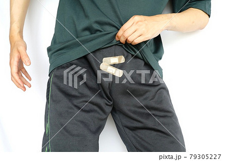 股間に絆創膏を貼っている