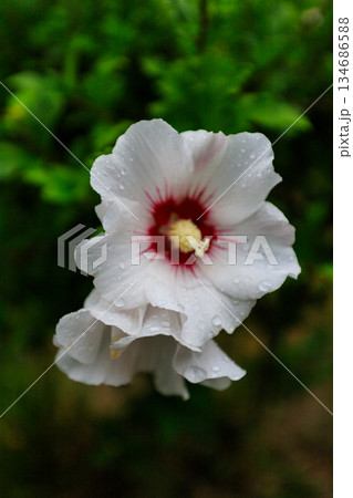 White Rose of Sharon Hibiscus Flower with Raindrops
