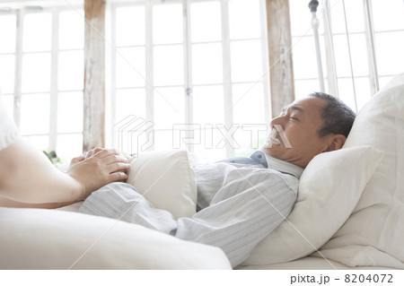 ミドル女性 寝る ベットルーム 寝室 ライフスタイルイメージ