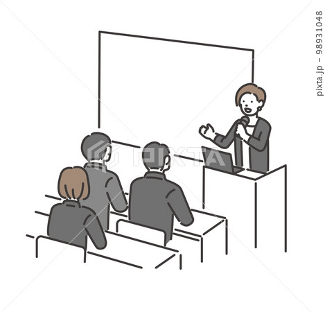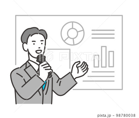 マイクを持ってプレゼンテーションをする男性のセミナー講師のベクターイラスト素材/ビジネス/講習/プレ