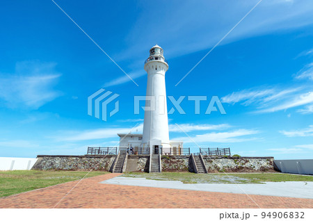 【青森県下北半島尻屋崎】青空に映える白亜の灯台のある風景