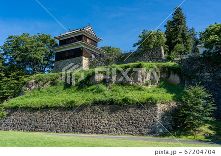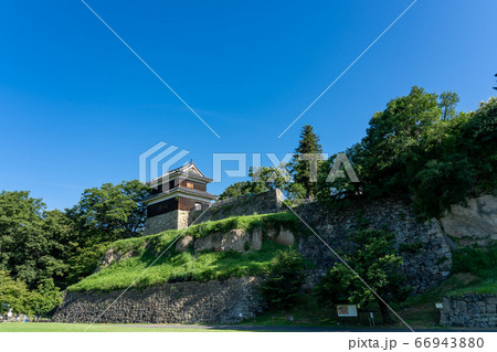 長野 夏空の尼ケ淵から見た上田城の南櫓と西櫓