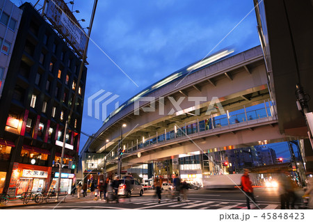 日本の東京都市景観 日暮里・舎人ライナー 西日暮里駅を望む(夜景)