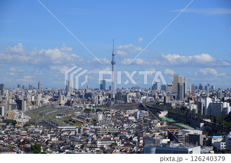日本の東京都市景観 日暮里・舎人ライナー 西日暮里駅などを望む