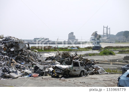 2011年7月被災した相馬市原釜尾浜、松ヶ浦大橋