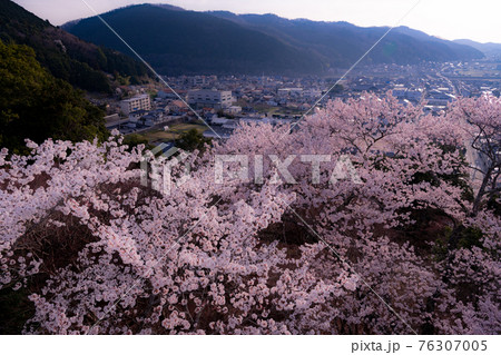桜の花びら舞う春の風景(尾関山公園:広島県三次市)