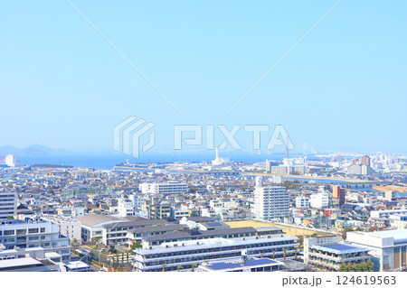 香川県丸亀市、丸亀城から見た丸亀市の風景