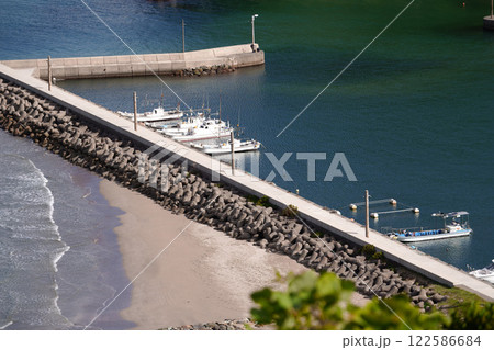 一幅の絵のように美しい居組漁港の小島と海
