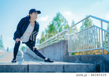 若い女性 準備運動 ウォーミングアップ