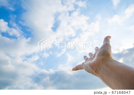 空と太陽の光を遮る右手1
