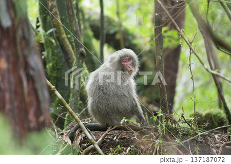 屋久島の世界遺産エリア、西部林道のヤクザル