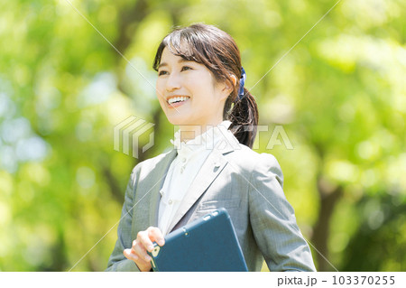 就活 リクルートスーツを着た男女のポートレート 撮影協力「LINK FOREST」