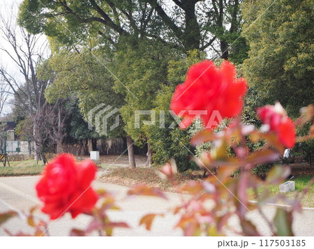 赤いバラの風景