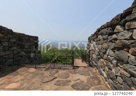 古代朝鮮式山城「屋嶋城」の城門と高松市街を城内から見る