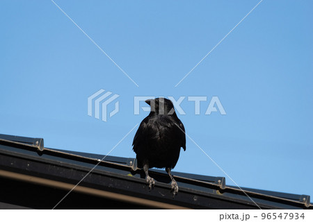 屋根の上にいるカラス