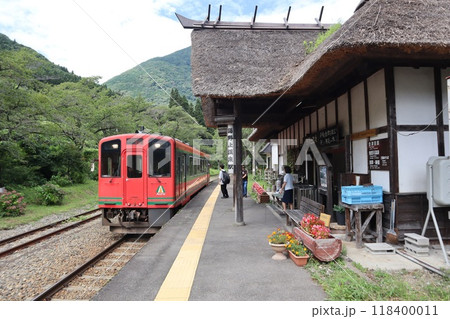 会津鉄道会津線 湯野上温泉駅 茅葺き屋根の駅舎