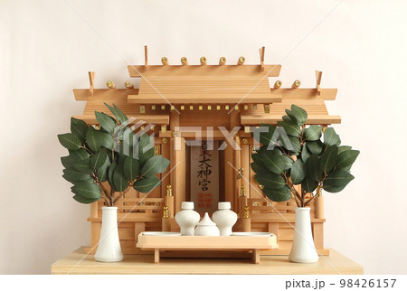 神社の御札がおさめられた神棚と榊 白バック3