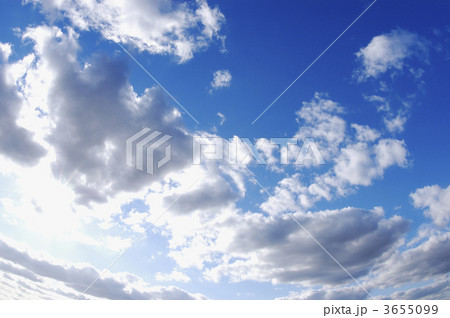 空の写真素材 空と雲 青い空と白い雲 コピースペース テキストスペース 普通の雲 積雲 層積雲?