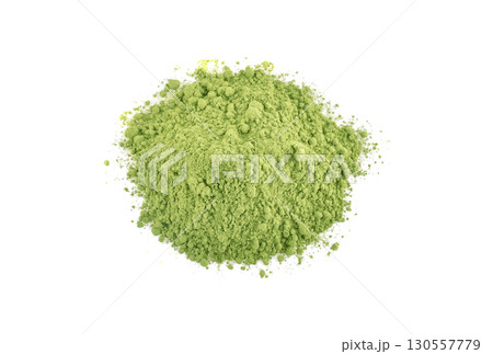 Bee pollen grains in ceramic spoon isolated on white background. Top view. Flat lay