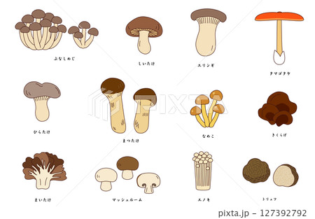 いろいろなキノコの集合イラスト ベクター素材