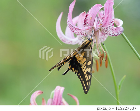 ヤマユリの花の蜜を吸うアゲハチョウ