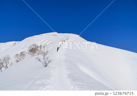 雪山登山・谷川岳天神尾根の絶景と登る登山者