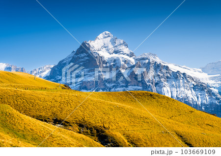 Eiger Mountain North Face at Sunset in Winter. Switzerland