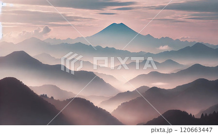 山梨県・王岳付近の稜線から見る富士山と大雲海
