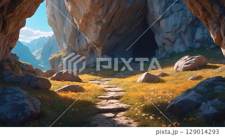 ゲーム背景 洞窟の先にある遺跡ダンジョン入り口