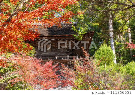 秋の京都高雄 神護寺 紅葉に包まれた宝蔵