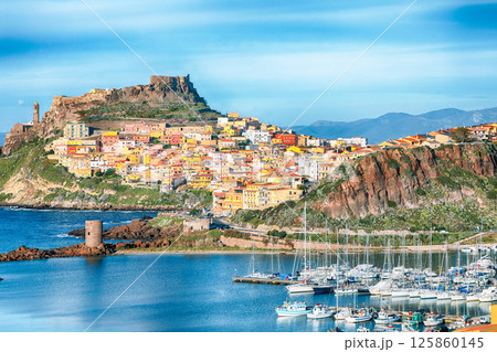 Unbelivable view of Medieval town of Castelsardo. Cityscape of Castelsardo port.