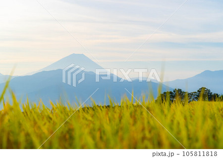 【秋素材】収穫時期を迎えた中野の棚田の日の出【山梨県】