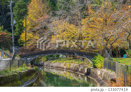 日本 静岡県川根本町、寸又峡の夢の吊り橋と仄かに紅葉した木々