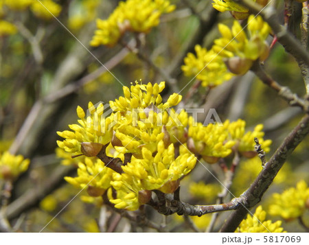 自然 植物 サンシュユ、三月初め黄色い花が満開になりました