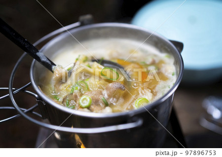 山やキャンプで調理するアウトドアごはん・山ごはん【キムチ鍋】