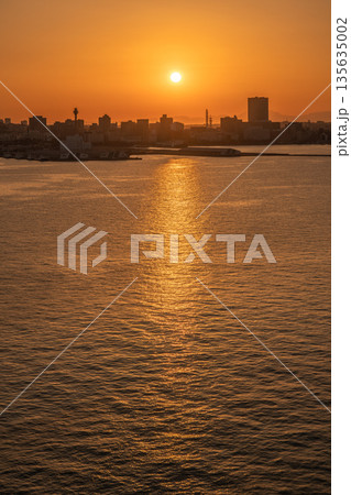 《神奈川県》横浜都市風景・黄金色の夕暮れ
